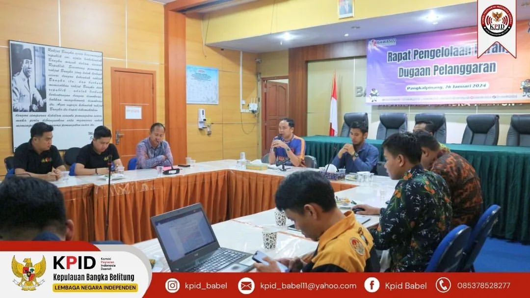 Pangkalpinang - Jumat (26/1/2024), Koordinator Bidang PKSP KPID Kepulauan Bangka Belitung, Izhar Yulia Amri, menghadiri undangan dari Badan Pengawas Pemilihan Umum (Bawaslu) Provinsi Kepulauan Bangka Belitung dalam kegiatan Rapat Koordinasi Pengelolaan Barang Dugaan Pelanggaran.