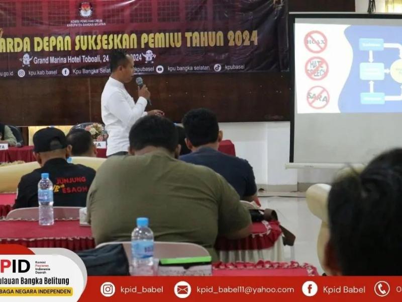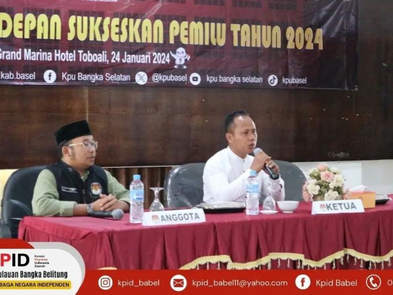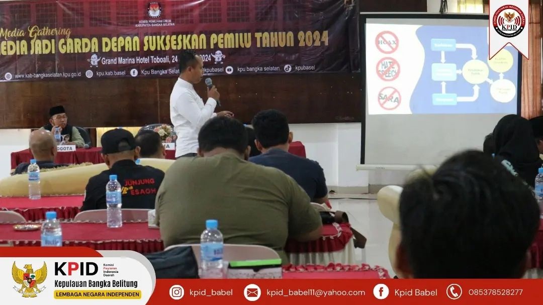 Bangka Selatan - Rabu (24/1/2024), Koordinator Bidang PKSP, Izhar Yulia Amri dan Anggota Bidang PIS, Gutunubai beserta staf Komisi Penyiaran Indonesia Daerah (KPID) Kepulauan Bangka Belitung, menghadiri undangan dari Komisi Pemilihan Umum (KPU) Bangka Selatan dan Koordinator Bidang PKSP, Izhar Yulia Amri turut serta sebagai narasumber pada kegiatan Media Gathering dengan tema “Media Jadi Garda Depan Sukseskan Pemilu Tahun 2024”.