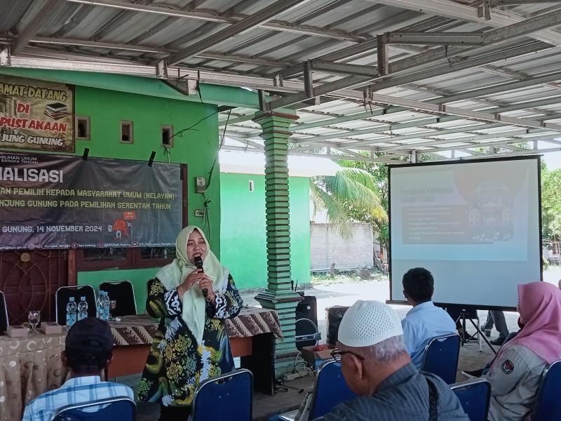 Acara yang dihadiri oleh masyarakat umum, khususnya kelompok nelayan, untuk mensosialisasikan pentingnya partisipasi dalam Pemilihan Serentak Tahun 2024. "Dalam kesempatan tersebut, Sonya Anggia Sukma memberikan pemaparan mengenai tata cara penyelenggaraan Pemilihan, serta menjelaskan berbagai hal terkait hak dan kewajiban pemilih. Sosialisasi ini bertujuan untuk meningkatkan pemahaman masyarakat mengenai proses demokrasi yang akan berlangsung, Masyarakat juga harus diberikan informasi yang jelas dan mudah dipahami mengenai teknis pemilihan, serta pentingnya hak suara dalam menentukan pemimpin yang akan memajukan daerah. Sekaligus mendorong untuk lebih aktif berpartisipasi dalam Pemilihan Serentak 2024 yang akan digelar di Kabupaten Bangka Tengah," ujar Sonya.